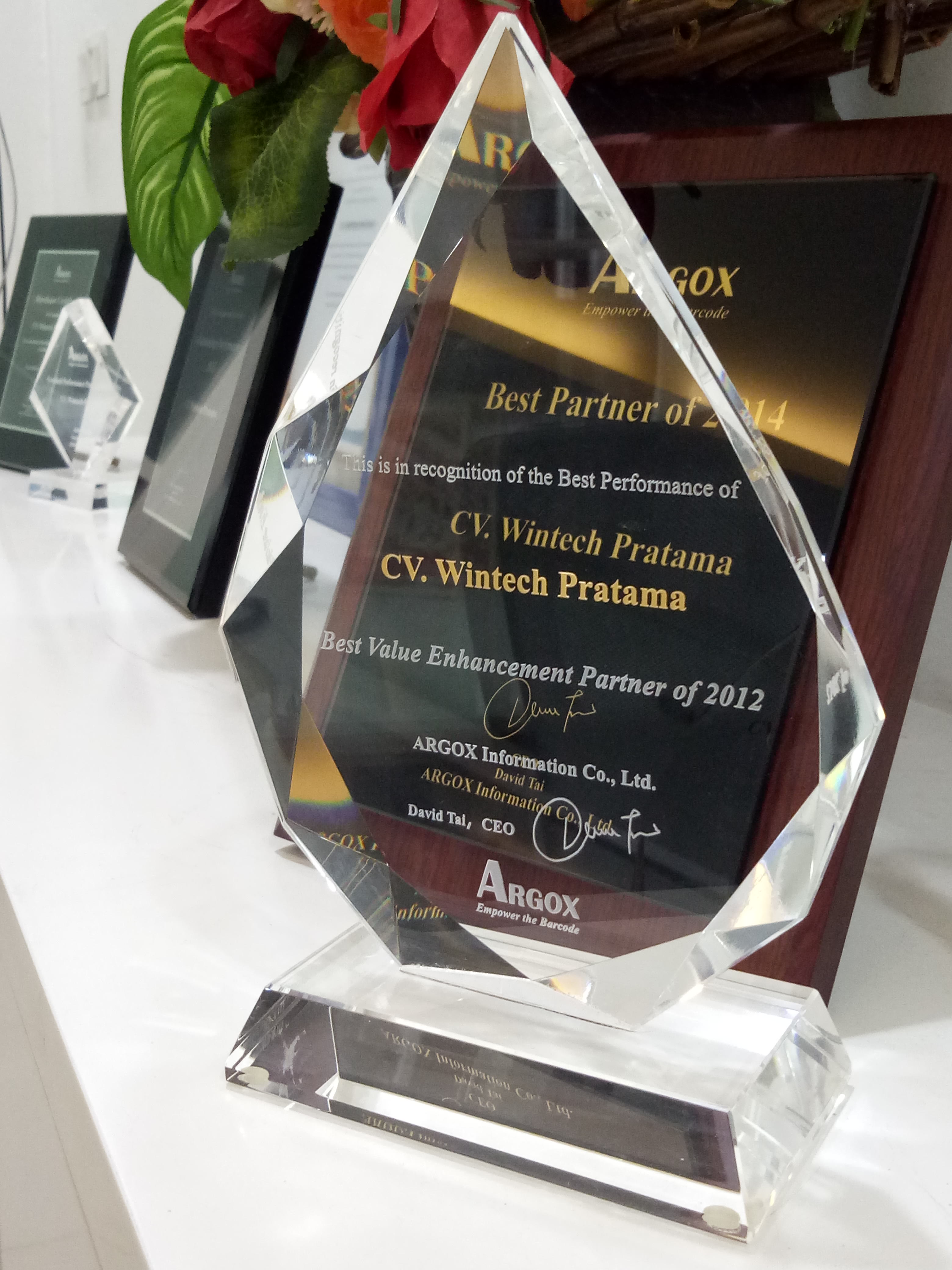 Penghargaan Distributor Certificate 2011 Out Standing Performance 2011 Best Partner Of 2014 Authorized Distributor Argox 2013-2014 Excellent Performance Partner Of 2015 Best Value Enchancement Partner of 2012 Outstanding Performance 2010 Best Value Enchancement Partner of 2012 Piagam Penghargaan Asperindo